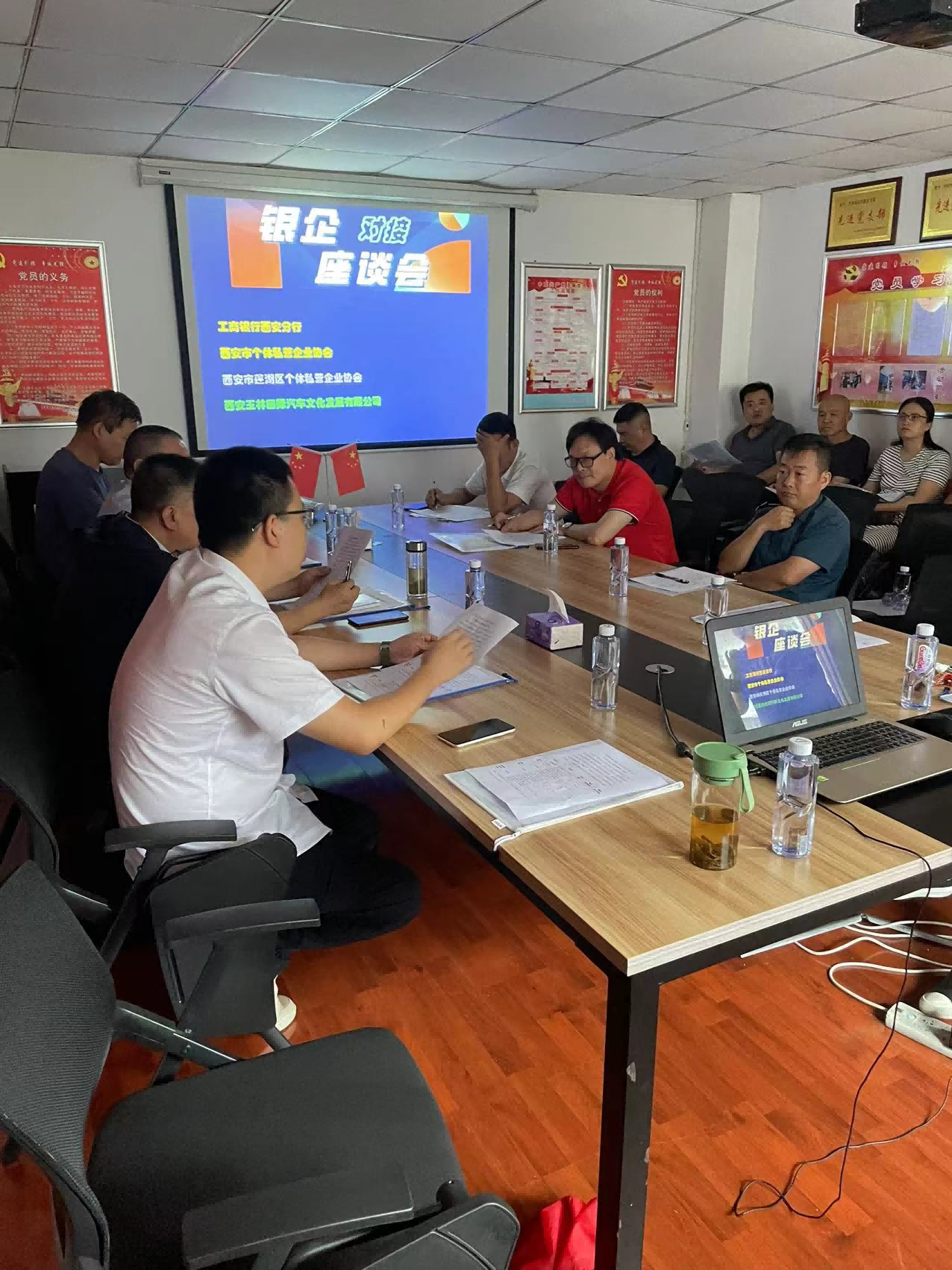 為全面貫徹落實習(xí)近平總書記關(guān)于“堅持把金融服務(wù)實體經(jīng)濟作為根本宗旨”重要論述,加強銀行與企業(yè)間的溝通協(xié)作,進一步優(yōu)化營商環(huán)境,實現(xiàn)互利共贏,7月10日,西安市玉林國際汽車文化發(fā)展有限公司與中國工商銀行西安北大街支行、西安市個體私營協(xié)會、西安市蓮湖區(qū)個體私營協(xié)會共同舉辦銀企對接座談會,近20戶企業(yè)家代表參加了座談會。